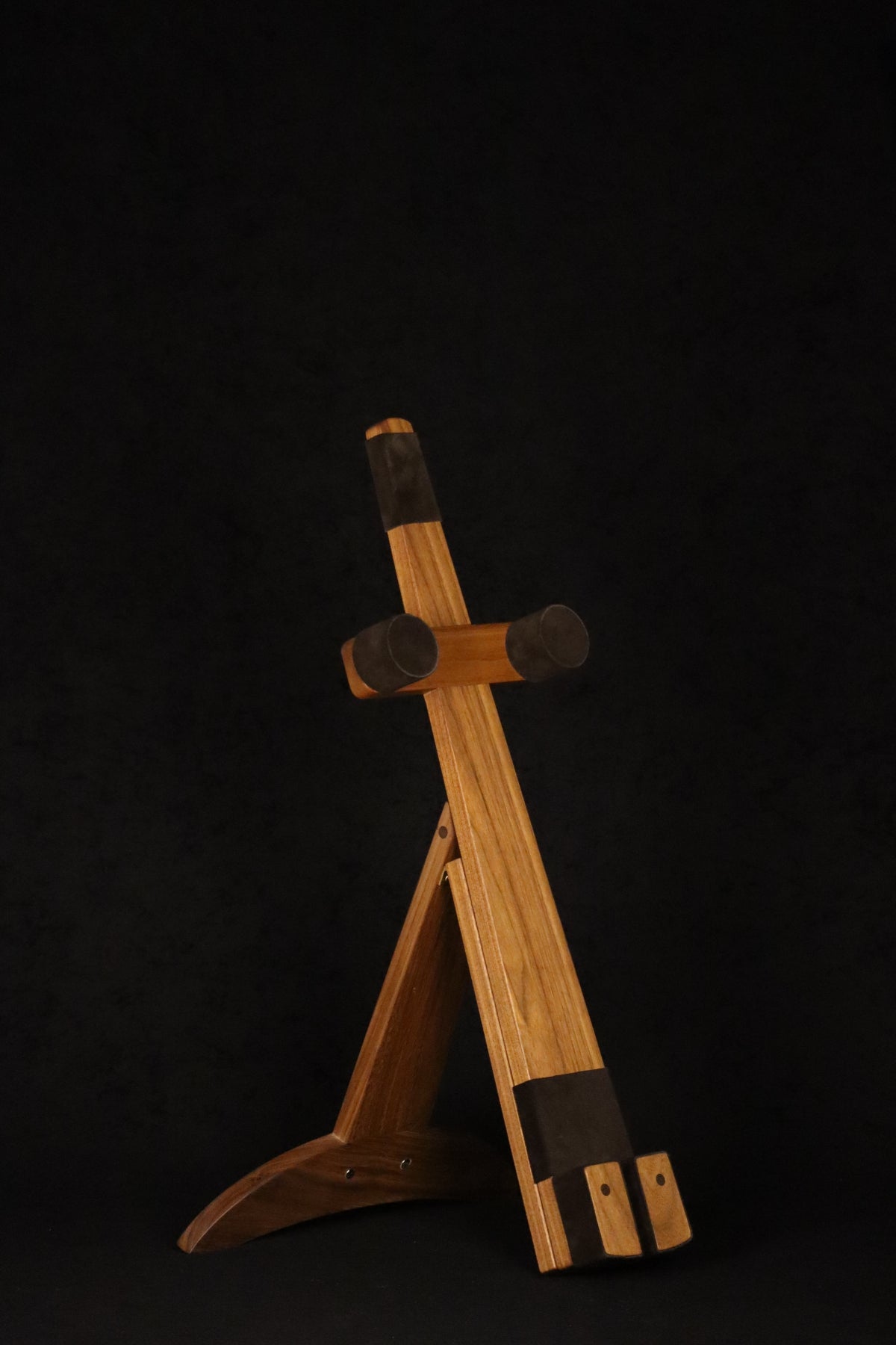 As our other family business, Solid Ground Stands, we create these beautiful hardwood stands for what we consider a standard sized mountain dulcimer. Adjustable pads allow it to accomodate a wide variety of dulcimers, both hourglass and teardrop shaped.