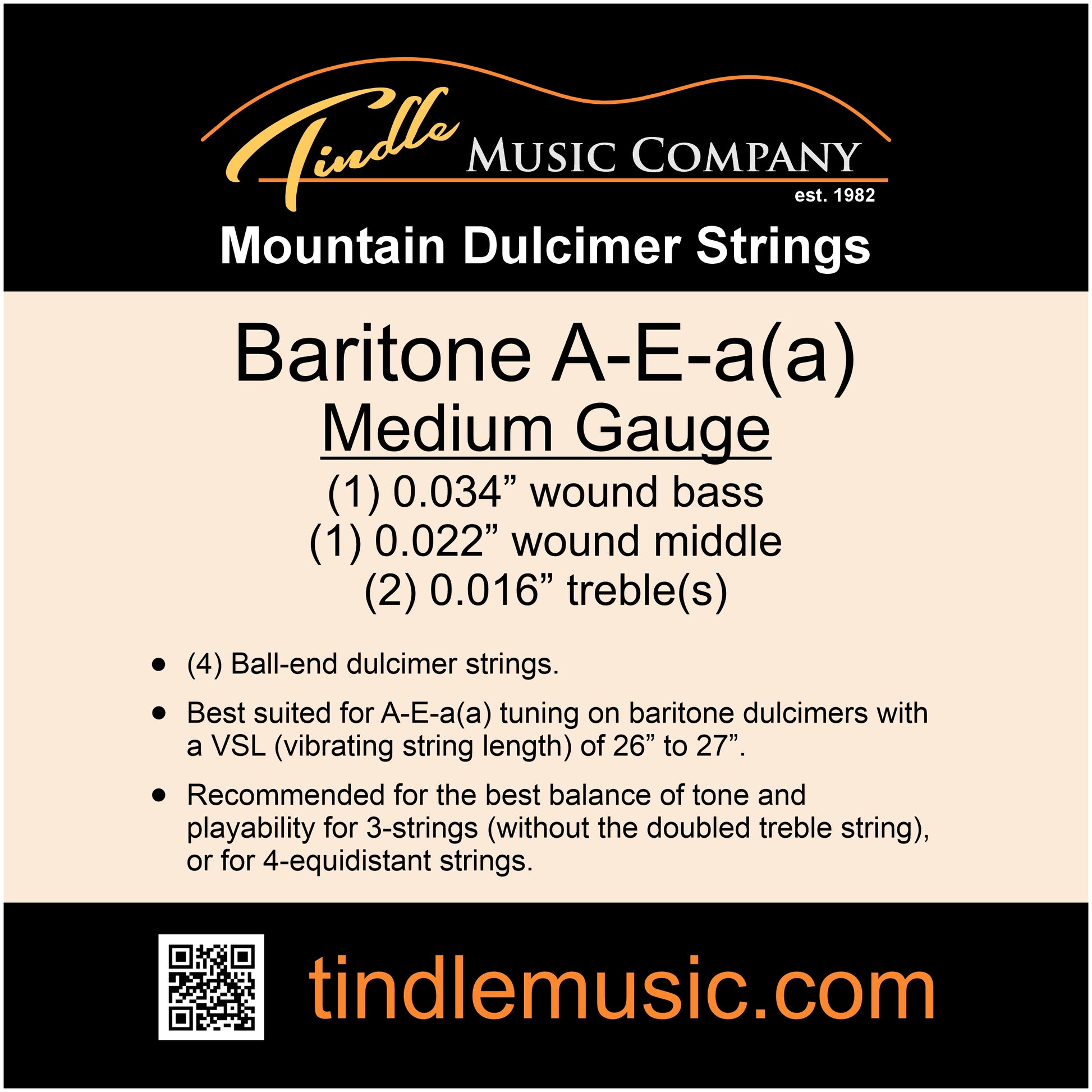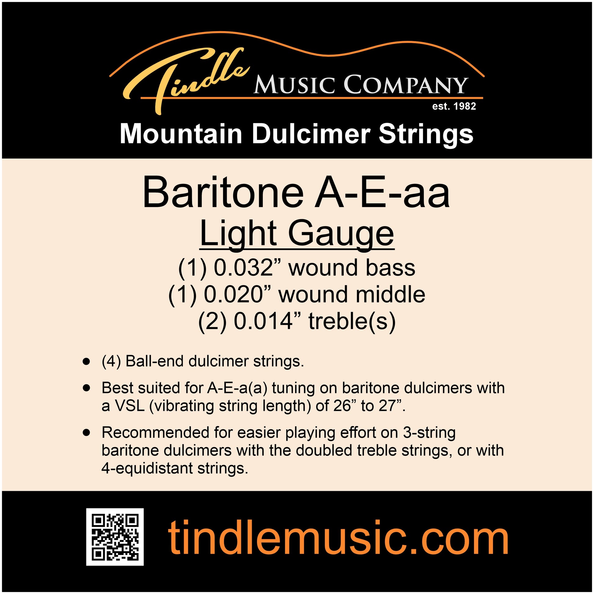- Baritone A-E-aa Dulcimer strings in medium and light gauge sets.