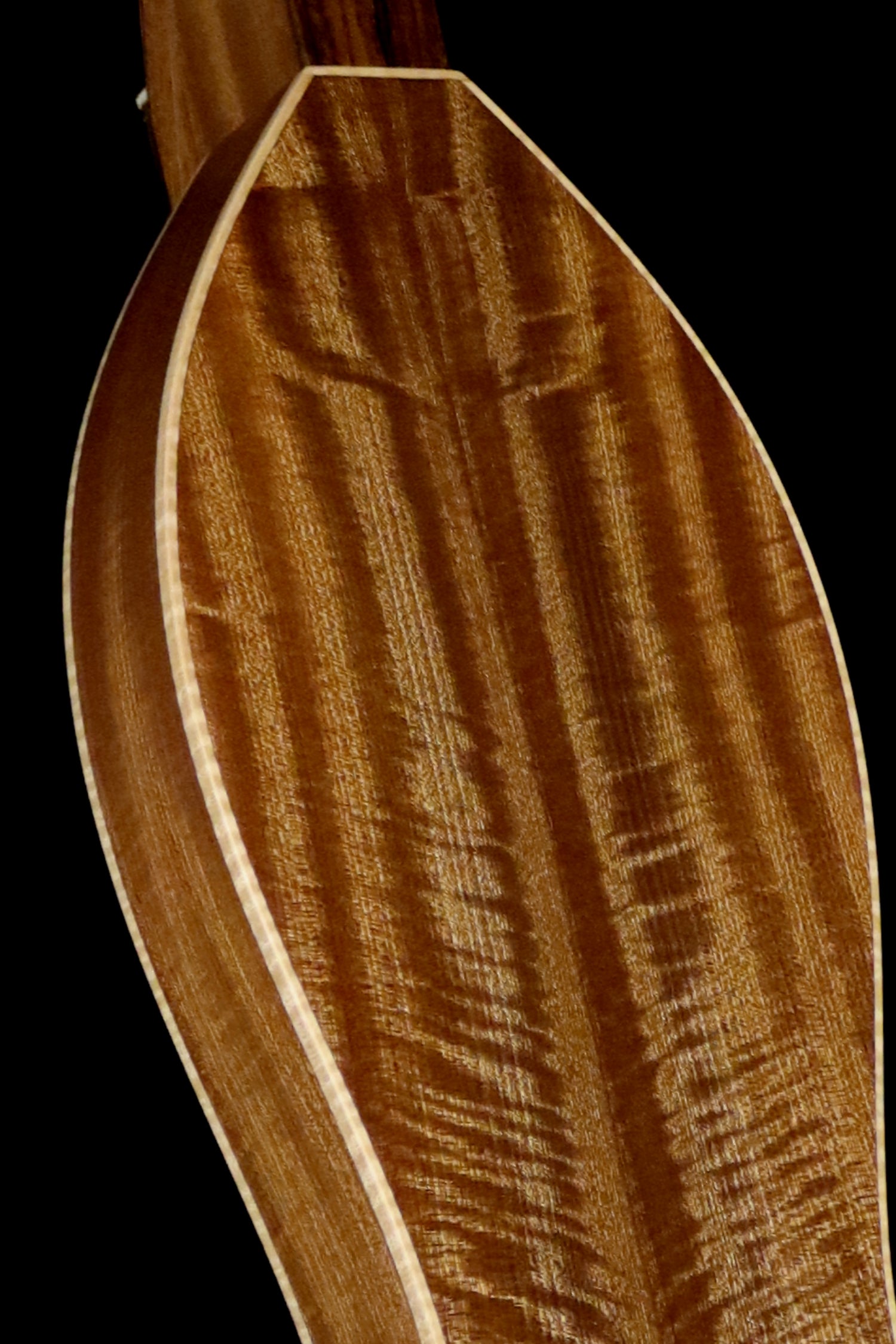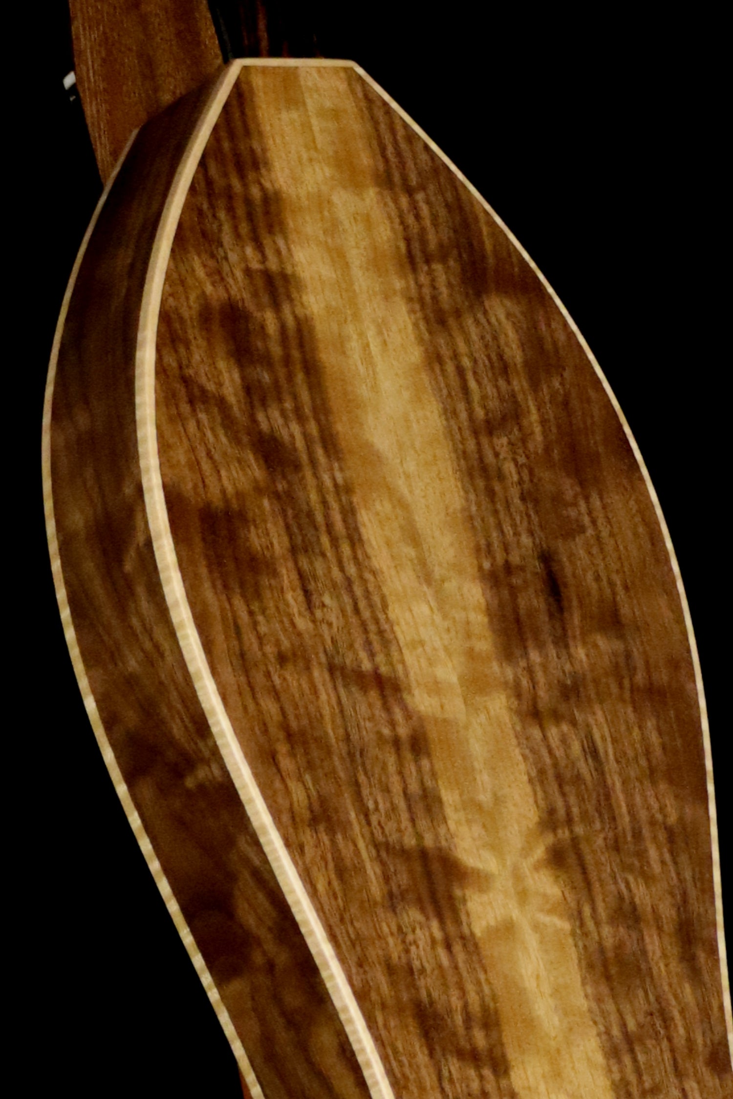 The Premium Serenade includes Bolivian Rosewood (aka Morado) for the headplate, fingerboard, and tailpiece. This wood not only provides a very durable surface for the fingerboard, but also a great background "canvas" for all manner of inlay work. It is typically a very dark purple-ish brown color, which complements a wide variety of woods.