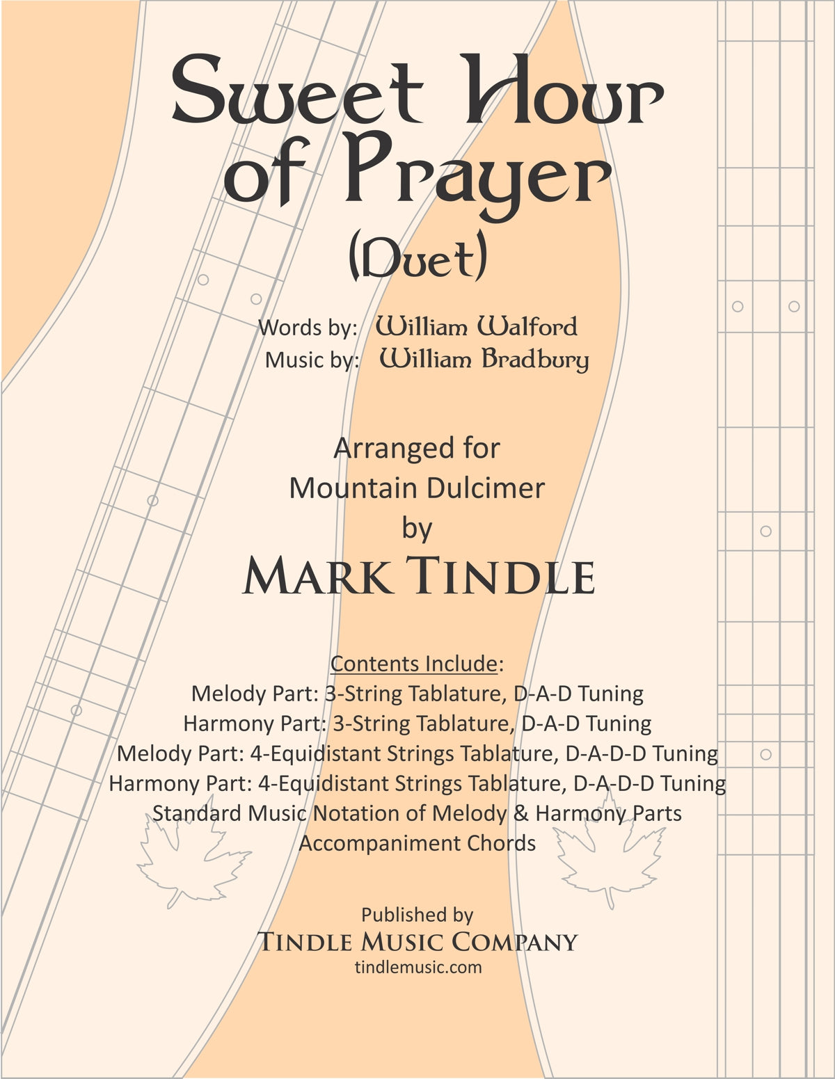 Sweet Hour of Prayer is beautiful and familiar hymn that sounds like it was written for the dulcimer. This intermediate level duet arrangement includes tablature for both 3-string melody and harmony parts, and 4-equidistant strings melody and harmony parts. Standard musical notation for both the melody and harmony parts is included along with the accompaniment chord names.