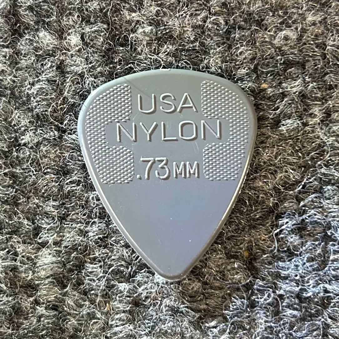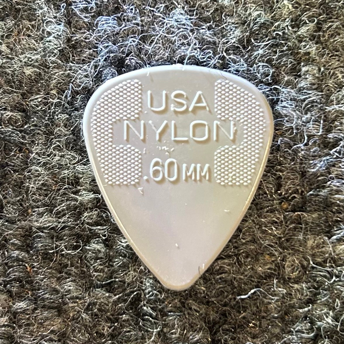 Nylon - These "Jim Dunlop" brand picks are available here in my 2 favorite thicknesses (stiffness). Made from a softer Nylon material, they can create a bit purer tone with less pick noise, but are perhaps too "mellow" sounding for some folks. It just depends upon the sound style you are after.